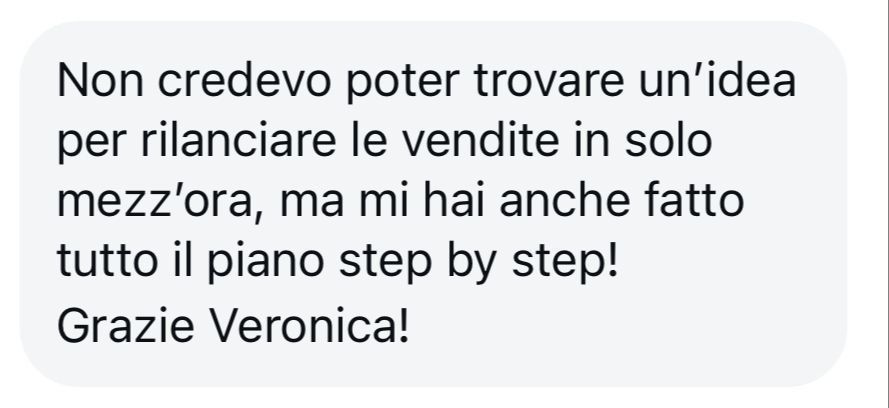 Si tende a pensare che un'ora sia troppo corta, ma è la formula più efficace. In un'ora posso risolvere la maggior parte dei problemi della tua attività, proponendoti un piano a step nelle note condivise in piattaforma, così non ti perdi niente.